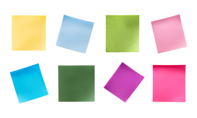 Variety of colorful sticky notes arranged, post it adhesives in different colors, post it notes collection png image
