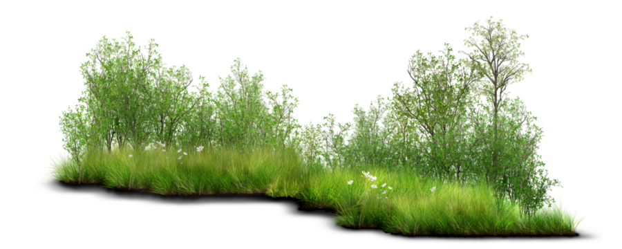 grass on white background/Lush green shrubs and foliage growing naturally among tall grass.