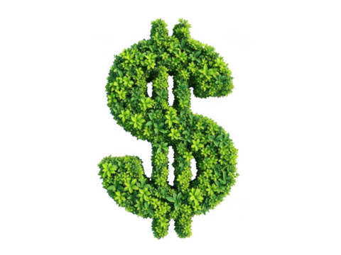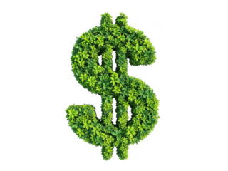 A vibrant, green symbol made of leaves, resembling a section sign, representing nature and growth.