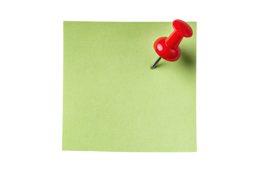 Blank Green Paper Note with Push Pin Isolated on Transparent Background