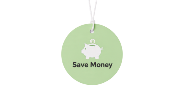 A green tag with a string is shown on a white background for labeling purposes clearly.
