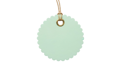 Mint green scalloped gift tag PNG isolated on transparent background, blank label with string for product pricing and branding