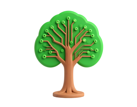 3D Green Tech Tree Illustration