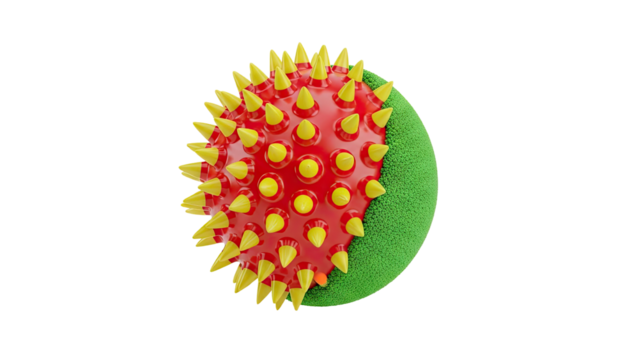 3D Spiky Red and Yellow Sphere with Green Texture on transparent background