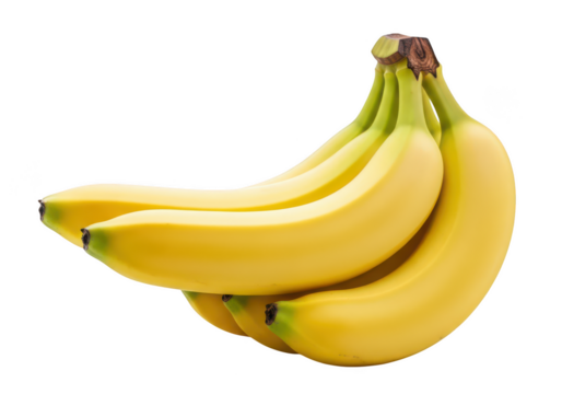 A bunch of ripe yellow bananas with green tips showing healthy freshness and natural sweetness isolated on transparent background