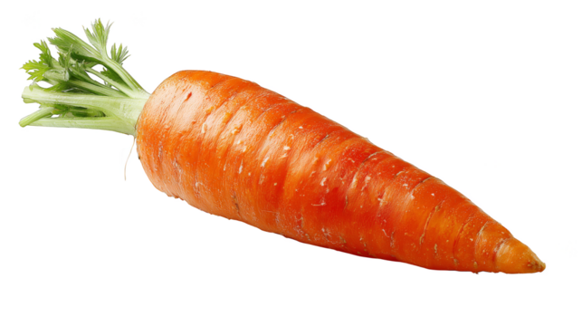 Carrot is shown with its green top still attached, isolated