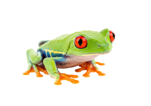 Isolated red-eyed tree frog with vibrant coloration, eye-catching rainforest animal on display