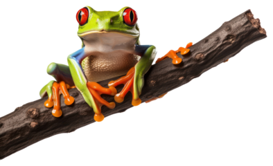 A vibrant green tree frog isolated on a transparent background, ready to use