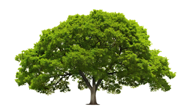 A clear background showcases a full view of a green tree in a transparent PNG image.