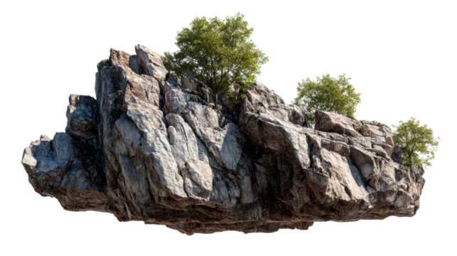 Floating rock with green trees on a transparent background