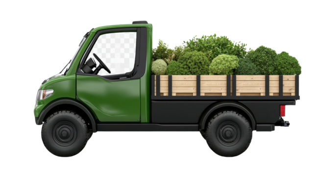 Green delivery truck PNG isolated on transparent background, commercial vehicle for logistics and transportation services