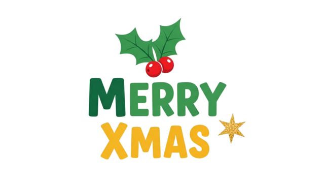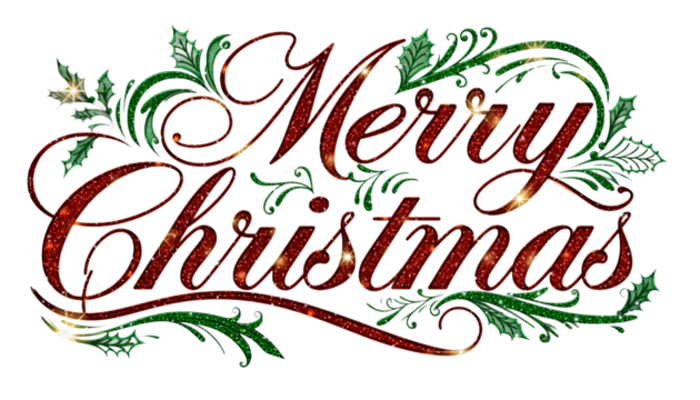 Merry christmas typography with green leaves decoration isolated on transparent background
