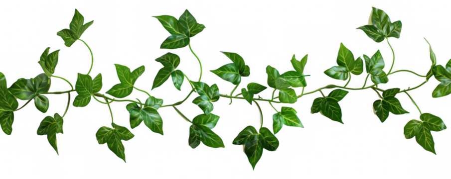 A vibrant green vine with starshaped leaves gracefully curves across a transparent background, isolated on transparent background, symbolizing growth and nature