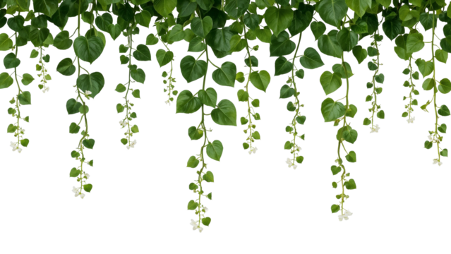 Cascading green vines with heartshaped leaves in a repeating pattern isolated on transparent background