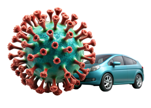 3d virus with a car png image on transparent background