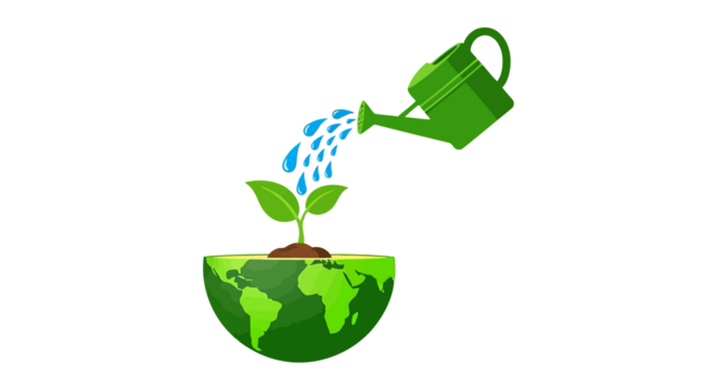 Green globe illustration on transparent background with icon