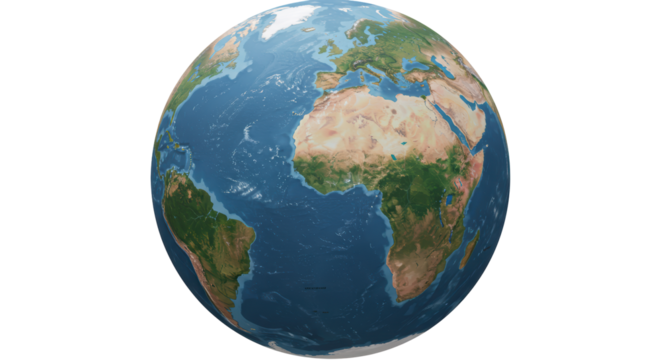 Detailed view of planet Earth from space showing continents and oceans isolated on a transparent background