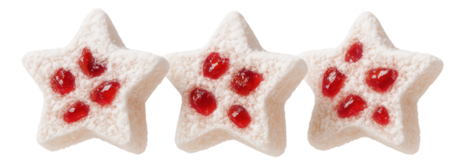 Stylized gift box with cream ribbons and star motifs on transparent background