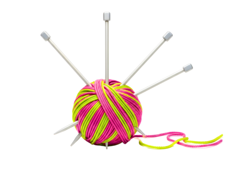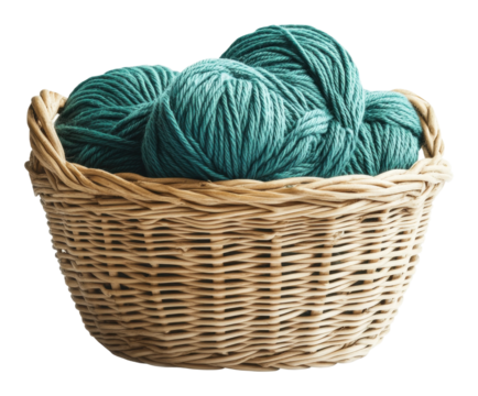 Crafting with green yarn diy projects home photography close-up. Isolated on transparent background, png.