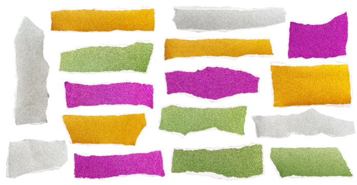 Blue green red yellow flowing hand-painted strokes with soft gradients on transparent background