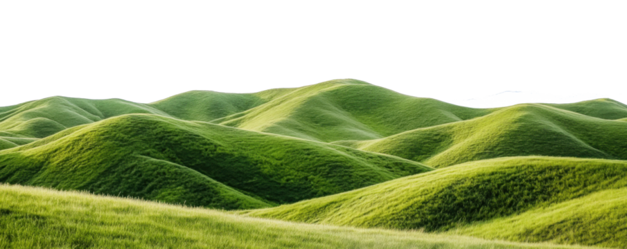 green grassland landscape isolated on white or transparent png