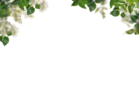 A decorative border featuring white flowers and green leaves, ideal for nature-themed designs. Ideal for spring and summer concepts, with fresh, vibrant botanical elements.