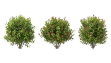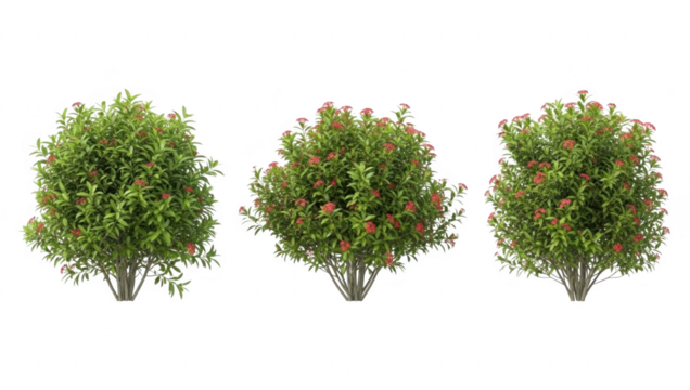 Vibrant red flowering bushes, ideal for diverse garden and landscape design projects isolated on transparent background