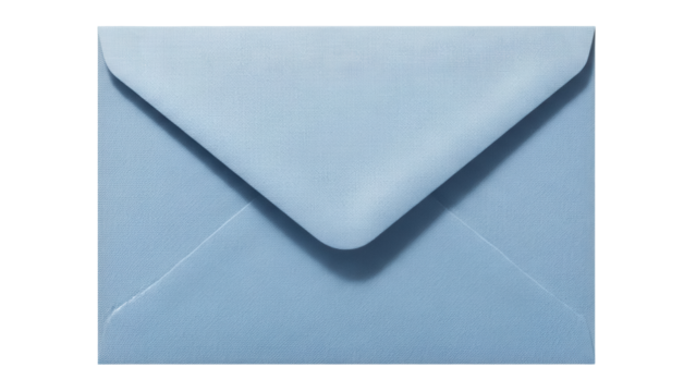 Light blue envelope PNG isolated on transparent background, stationery for sending letters and invitations, blank template for design