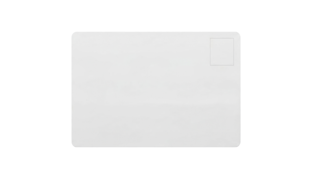Blank white rectangular card with rounded corners and a stamp box perfect for a customizable postcard design, business template, or personal message layout