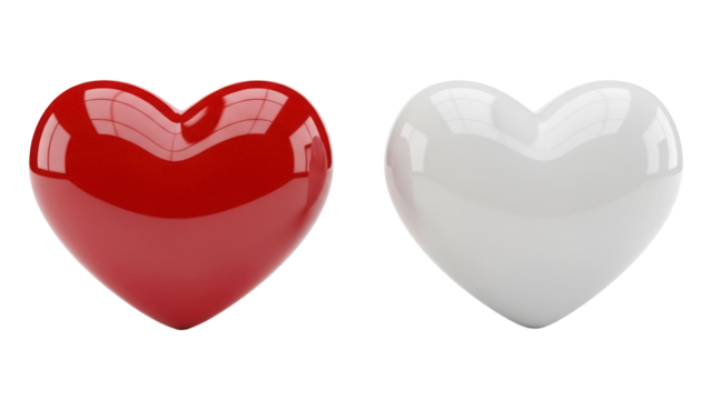 Red and white heart shapes isolated PNG, love and romance concept for Valentine s Day greeting cards and graphic design projects