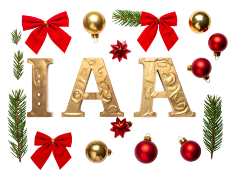 Festive joy text design with christmas elements and metallic letters isolated on transparent background