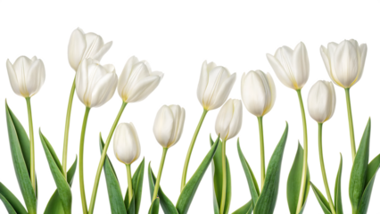 Beautiful white tulip flower isolated on transparent background, spring blossom floral arrangement for greeting card and wedding invitation