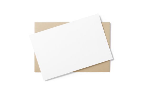 Brown paper envelope mockup with paper sheet isolated on a transparent background, PNG. High resolution.
