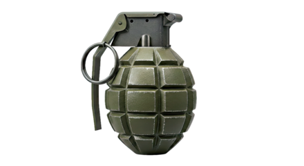 Photorealistic fragmentation grenade on a transparent background, showcasing its destructive potential