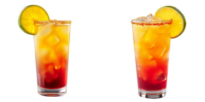 Tequila Sunrise Cocktail Set Isolated on Transparent or White Background, PNG