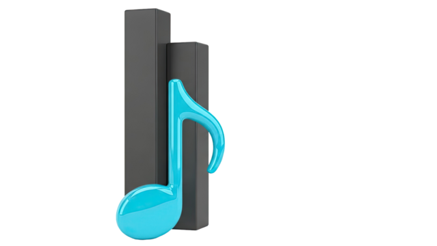 Blue musical note in front of dark grey bars