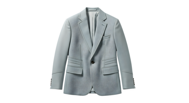 Modern Charcoal Grey Blazer with Fabric Detailing – Transparent Studio PNG