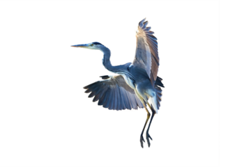 Grey heron bird in flight isolated on white background (Ardea cinerea)
