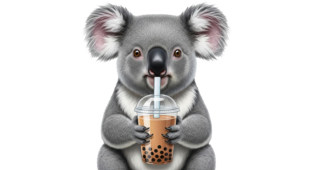 Cute Koala drinking Bubble Tea isolated PNG with Transparent Background