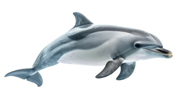 Sleek dolphin swims, its grey skin shimmering, set against a stark black backdrop