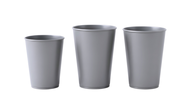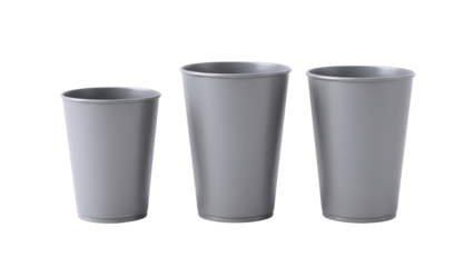 Set of three protein shaker bottles in white, grey, and black colors. Isolated on transparent background, png
