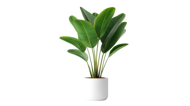 Modern Interior Decor: Large Tropical Potted Plant Isolated on Grey