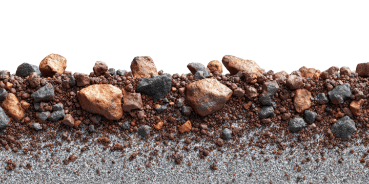 Martian Regolith Cross Section Showing Dust, Pebbles, and Rocks Isolated