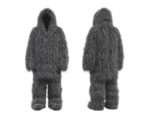 PNG of A full-body furry costume perfect for playful winter occasions, featuring a soft grey design with a hood.