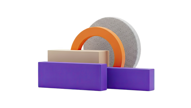Abstract geometric shapes on transparent backdrop with grid sphere