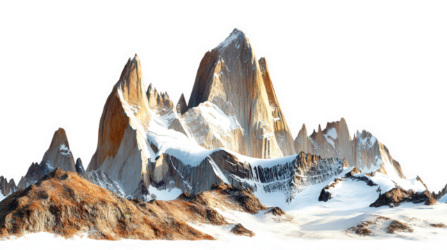 Jagged snow covered mountain peaks isolated on a transparent background rock