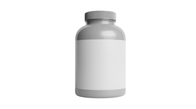 A simple clean and modern grey plastic bottle with a blank white label isolated
