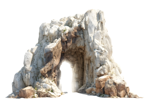 Snowy mountain peak with rugged terrain isolated on a transparent background