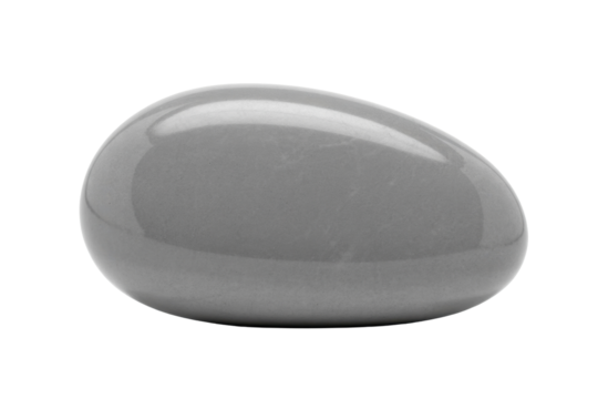 Single smooth gray natural river stone or spa therapy pebble design element isolated PNG with Transparent Background