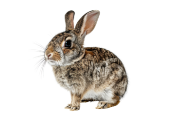 Small rabbit sitting upright with detailed fur isolated on a white background
